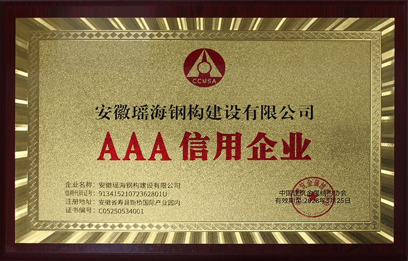 AAA级信用企业认证是具权威性企业信用评价体系,评审标准涵盖企业诚信经营、财务状况、履约能力、社会责任等多个维度。此次获评充分体现了开云官方网页版官网钢构在建筑钢结构领域的综合实力和良好信誉。