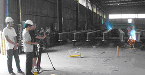 摄制组成员头戴安全帽,在机器的轰鸣声中,深入到我公司生产车间,在生产部员工的积极配合下,记录下了热火朝天、火花四溅的生产场面。此后,摄制组还对我公司颇具代表性的厂容厂貌进行了拍摄。