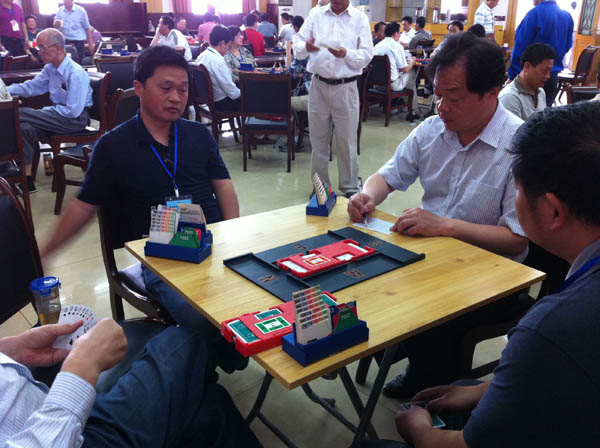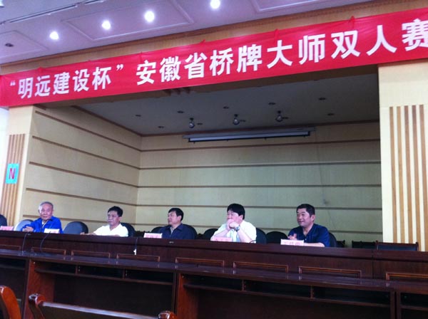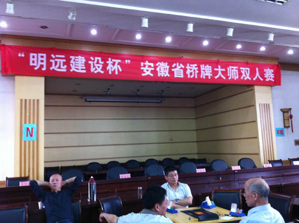 本报讯:为推动省内桥牌选手之间的牌技交流,由合肥明远建设工程有限公司冠名承办的安徽省桥牌大师双人赛于2012年5月19 日至20日在淮南市淮化宾馆隆重拉开战幕,来自全省各地100多名具有桥牌红桃大师以上称号的牌手参加了此次比赛。
