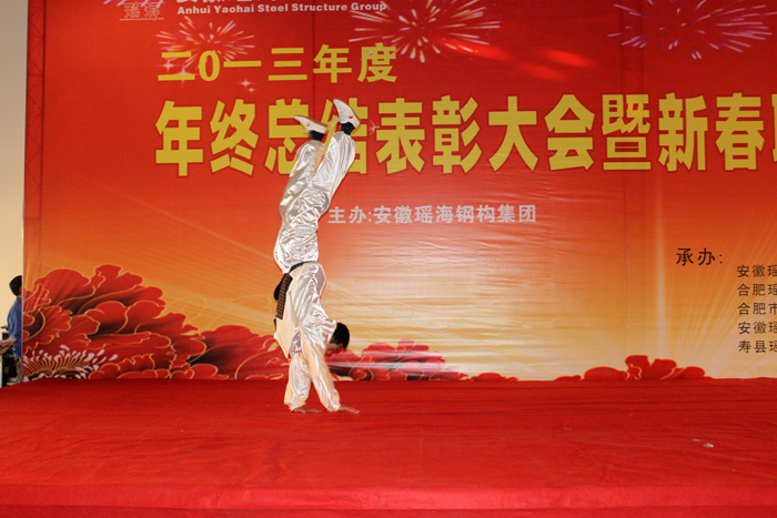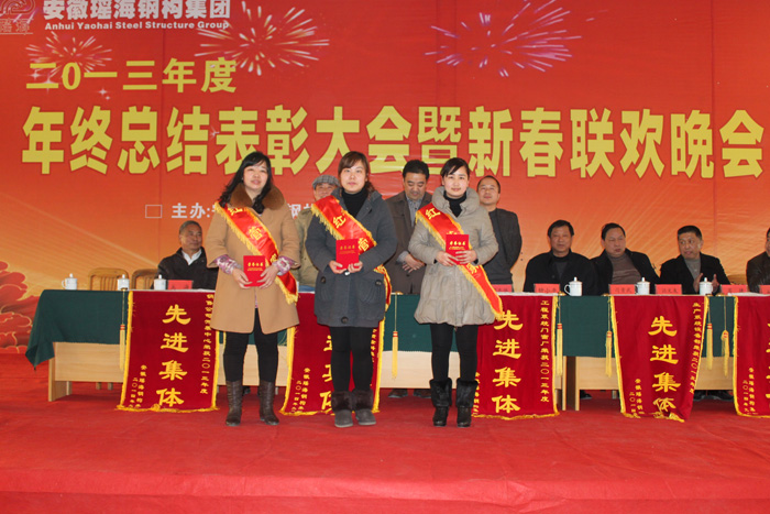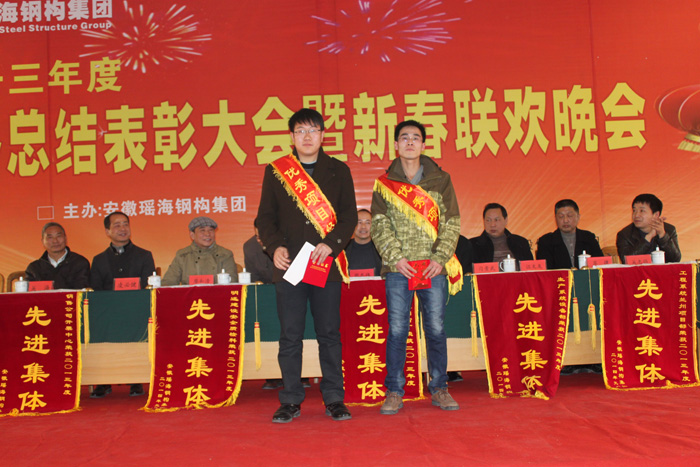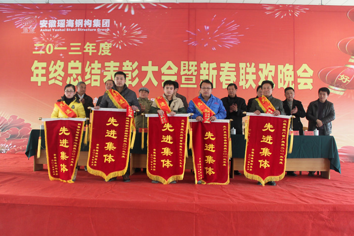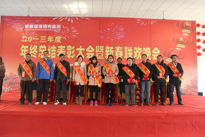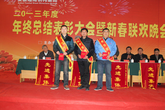 本报讯:2014年1月24日下午,安徽开云官方网页版官网钢构多功能厅内,一排排优秀员工,一面面锦旗、一本本荣誉证书、一件件家纺产品、一串串灯笼及红红的舞台,和着《恭喜发财》欢快的乐曲,将开云官方网页版官网钢构多功能厅装扮的格外喜庆,在这里正在举行开云官方网页版官网钢构2013年度年终总结表彰大会暨新春联欢会。
