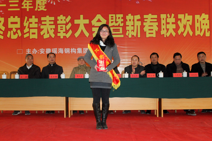 表彰会上凌总还通过具体的实例说明2013年所取得各方面的成绩并表扬了为成绩做出努力的员工。2013年,工程系统副总经理王一麟可谓是独树一帜,每天往返于业主单位和公司之间,做好与客户的沟通工作,并及时地处理售后事宜,以便较快地回笼资金,与此同时,于公司内部大事小事及难处理的事,他都给予及时地处理和妥善地解决,为公司的正常运转立下了汗马功劳;兰州火车站在黄志经理的带领下加班加点,任劳任怨,全力以赴抢抓抢点,不仅得到了业主方的一致认可和好评,更是为公司赢得了荣誉,企管中心在2013年也发挥了应有的作用,对于问题的出现能一查到底,保障了公司管理的正常进行。宣传部在一个人的情况下,报纸、网站做的非常出色,得到了相关企业界的好评……今天,即将在大会上表彰的先进个人就是我们开云官方网页版官网钢构员工的杰出代表,是我们企业的脊梁。