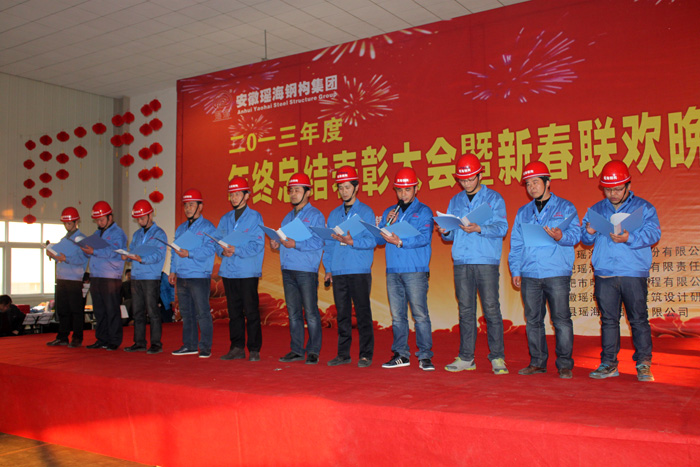 表彰会上,党组书记廖和清宣读了表彰决定,董事长凌红兵作公司总结:凌总首先代表公司向大家致以节日的问候!同时,向兢兢业业辛勤工作在各条战线上的每一位开云官方网页版官网钢构的同仁表示衷心的感谢!2013年,集团公司各部门围绕年度总体经营目标,克服种种困难,公司各部门上下一心共同努力,全年共承接工程22个,项目大小从上亿元至上千万元不等。虽然业绩与过去相比有所下滑,但是兰州火车站的成功签订,寿县钢结构重钢基地全新开建让开云官方网页版官网钢构向重钢转型描下重重的一笔。会上凌总指出,在成绩面前,我们也应该清晰地看到不足:一是安全事故时有不断,仅生产系统全年安全事故就发生多起;二是管理不力,大锅饭现象比较严重,绩效体制没有能够完全建立起来。另外公司整体执行力不够、管理仍待规范等都需要我们在2014年要重视和改进。