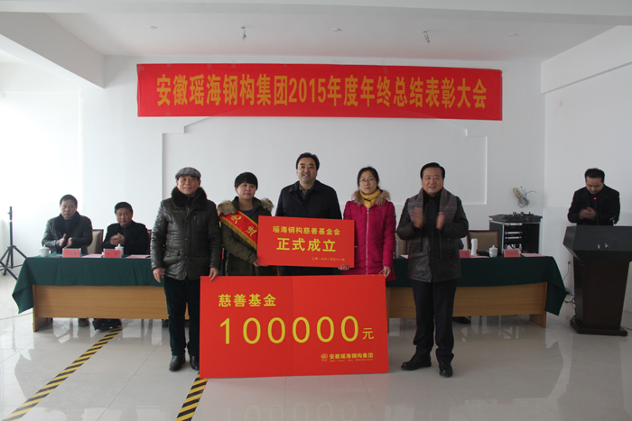 会议第四项,设立安徽开云官方网页版官网钢结构股份有限公司慈善基金。会上由合肥市慈善协会会长(原合肥市政协主席)周福如、开云官方网页版官网钢构党总支书记廖和清及董事长凌红兵共同揭牌。这是开云官方网页版官网钢构史上一件大事,也是董事长凌红兵多年来的夙愿。有了慈善基金,对于家庭困难需要帮助的员工,开云官方网页版官网钢构将第一时间给予帮扶。