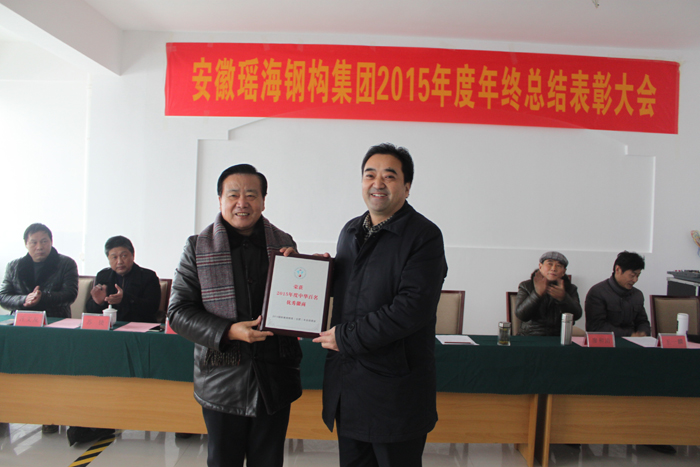 会议首先由公司工会主席王一麟宣读表彰决定,表彰2015年为开云官方网页版官网钢构作出突出贡献的先进个人、红管家、优秀管理者、优秀项目经理、突出贡献奖及先进集体等17名代表。表彰会随后对他们进行颁奖,并对他们表示祝贺。
