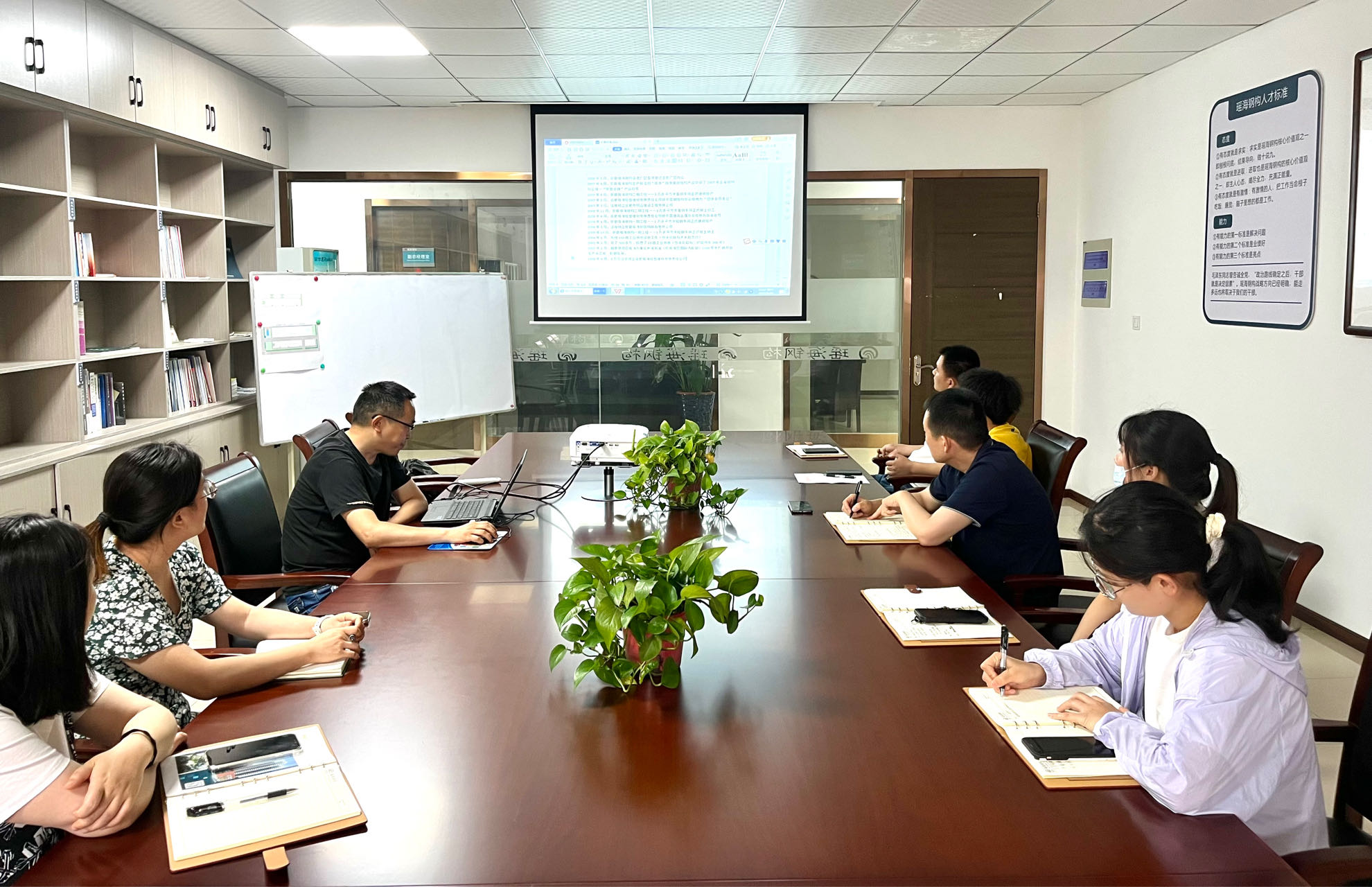 本次培训会议主要让新员工充分了解和融入公司文化、提升团队协作能力、增强个人素质,集团公司行政部进行了周密的策划安排。本次培训涉及了公司发展史、组织架构、公司文化、规章制度、薪酬福利等。帮助大家了解集团的基本情况和企业文化发展概况,快速掌握日常工作的基本规章制度,重点从公司发展目标和人才建设等方面进行解读。通过面对面座谈发言,与会人员打破“陌生感”,主动自我介绍,积极就入职以来的工作生活感想和诉求展开交流,并围绕公司规章制薪酬福利等方面提出合理化建议。史部长从自身工作经历谈起,鼓励新员工要立足岗位、不怕吃苦,勇担责任与使命,利用公司为员工提供稳定的发展平台和广阔的上升空间,勤学善思、主动作为;要坚持专业与专注,秉承“坚持、专注、不放弃”的工作精神,深挖潜力,提升张力,在新的工作岗位上勇担当,敢作为,助力公司高质量发展。史部长深入浅出的讲授为新员工在融入企业环境的过程中注入了动力和信心,为即将开始的 “新”工作奠定了基础。新员工通过此次培训不但对公司有了全面的认识,更对企业前景和个人职业发展充满信心。