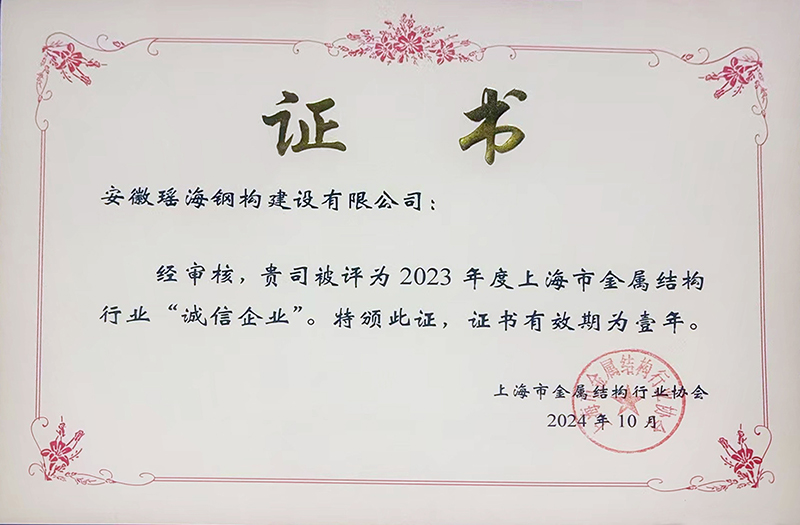 安徽开云官方网页版官网钢构建设公司荣获上海市建筑金属行业诚信企业称号