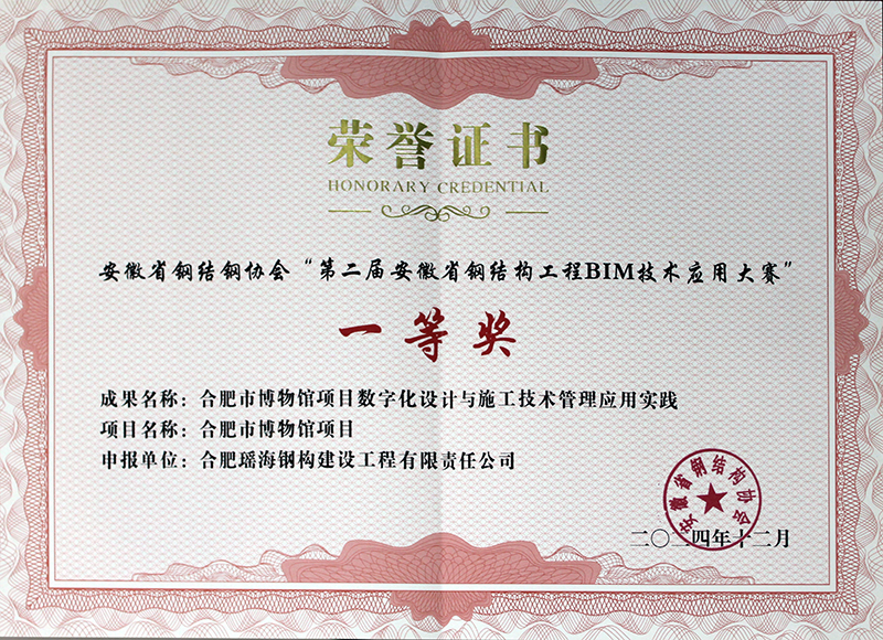 第二届安徽省钢结构工程BIM技术应用大赛一等奖