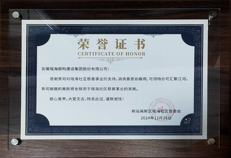 开云官方网页版官网钢构荣获开云官方网页版官网社区表彰