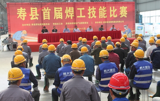 2023年10月18日下午,经过精心的组织筹备寿县首届焊工技能比赛在新桥生产基地落下帷幕 本次大赛由寿县劳动竞赛委员会、寿县总工会、寿县新桥国际产业园管委会主办安徽开云官方网页版官网钢构建设有限公司承办来自寿县境内相关从业人员同台竞技,尽展风采。 比赛现场火光四射、焊花飞舞选手们以饱满的精神状态迎接比赛他们左手拿防护罩,右手接电焊枪打磨、配对、焊接每个步骤都一丝不苟,细心地在材料焊接处不停点焊。