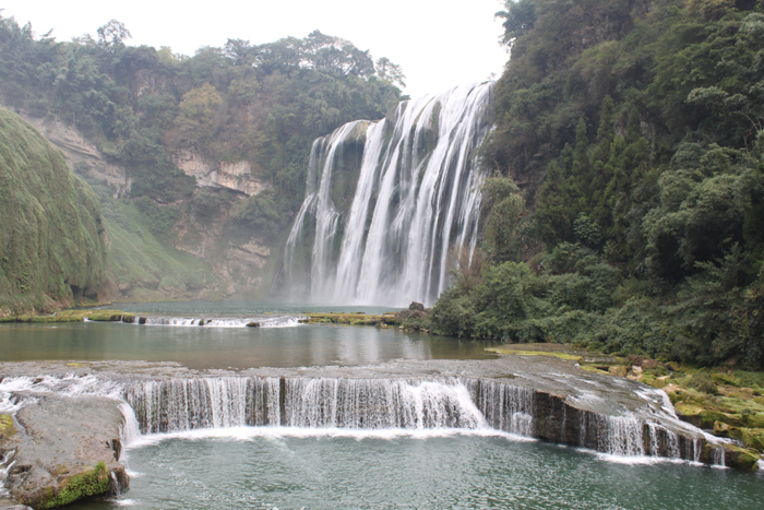 “遥闻水声轰轰,从陇隙北望,忽有水自东北山腋泻崖而下,捣入重渊,但见其上横白阔数丈”,在游览黄果树之前,跟着导游我们游览了陡坡塘瀑布。