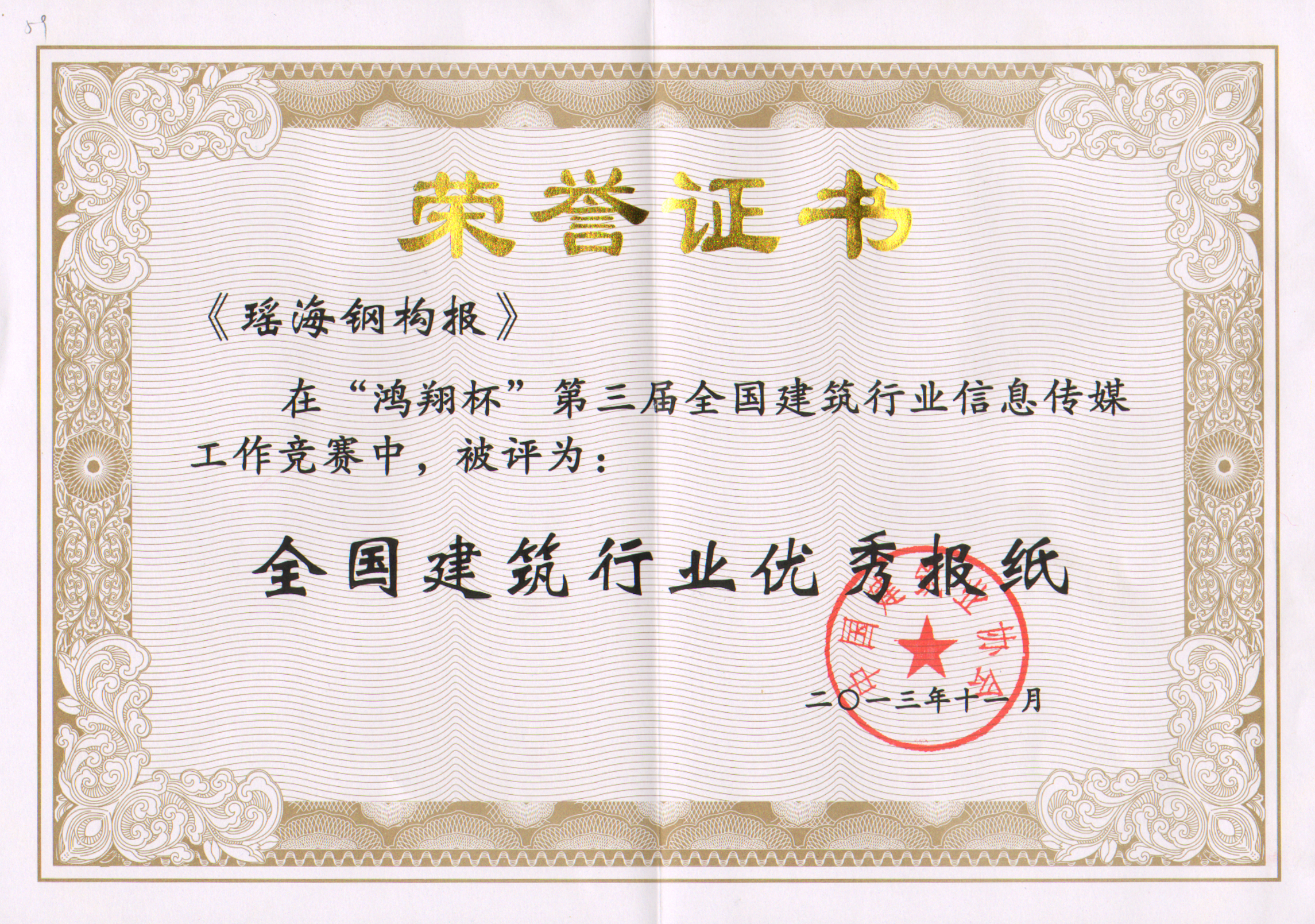 本报讯:为期三个月的“鸿翔杯”第三届全国建筑行业信息传媒竞赛评比工作落下帷幕,经过专家组评议,中国建筑业协会审定,最终《开云官方网页版官网钢构报》和开云官方网页版官网钢构网站脱颖而出,分别获得报纸类优秀报纸和网站类优秀网站。