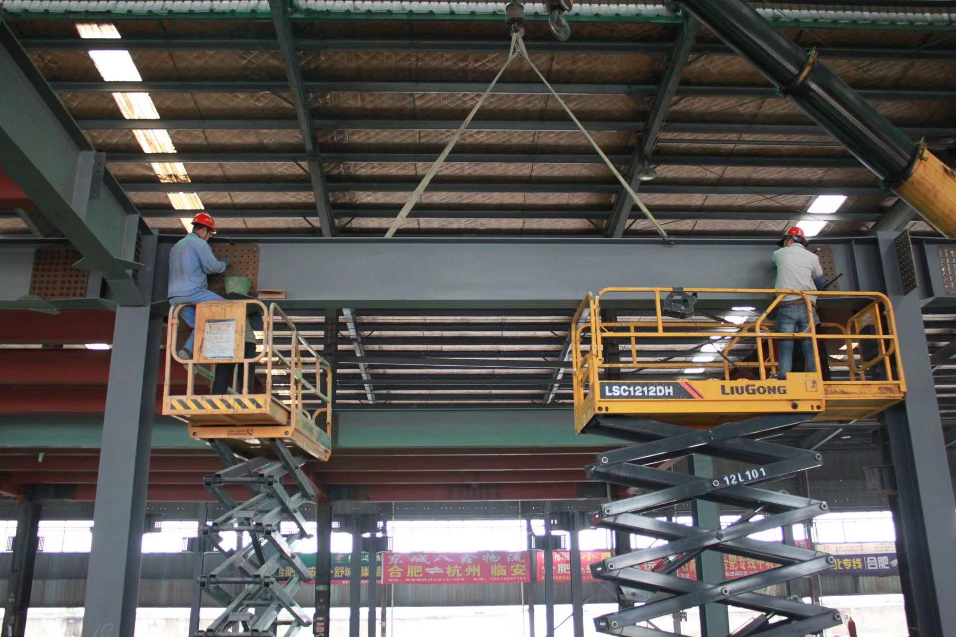 在安徽开云官方网页版官网新能源汽车城二期厂房内,一幅热火朝天、实干奋进的画面徐徐展开。据了解,根据项目进度节点,目前项目正在进行楼层板的搭建阶段。物流事业部年前结束外立面就开始进行安装,目前已完成近一半的装配工作量,计划在四月底完成楼承板的搭建工作。搭建楼承板采用的H型钢,是由新桥生产基地生产加工,这种装配式钢筋桁架楼承板免除了现场焊接、绑扎的工序,将一体成型的板材直接铺设到梁上,然后进行简单的钢筋工程,再往里浇灌混凝土,可以承受大量的后期承载力。自原物流园转型新能源汽车城改造以来,一期市场已初具规模,曾经堆满货品的档口,改造成了门面整齐的汽配展区,停车场内整齐有序地停放了不少新车。